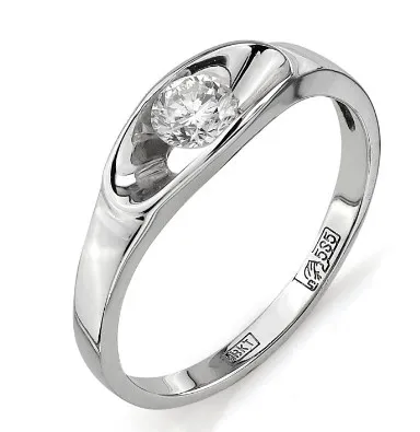 Посмотри на еще одно кольцо с бриллиантом женское с круглой огранкой Кр-57 и глухой закрепкой. Интересная форма кольца делает его визуально более легким, матовая поверхность, закругленная верхняя часть и необычное оформление оправы вокруг алмаза производят очень милое и нежное впечатление.
