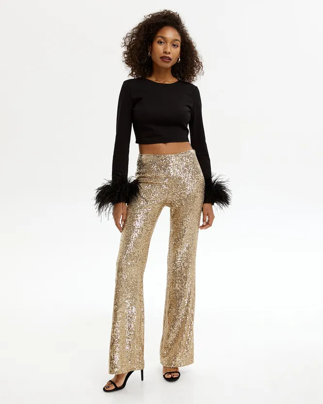 Львы — это те самые девушки, которых можно даже не спрашивать об их знаке зодиака. Ярких, колоритных и немного самовлюблённых приричуительниц огненной стихии можно легко вычислить в толпе. Сама природа наградила их тягой к богатству и роскоши, поэтому брюки клёш с пайетками бронзового цвета наиболее гармонично будут смотреться на них на новогодней вечеринке. Почему «их вечеринке»? Потому что леди-Львы всегда в центре внимания!