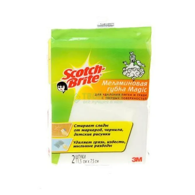 Теоретически состав губок из меламина должен быть одинаковым. Но он может отличаться по составу и процентному количеству ингредиентов. Поэтому ты можешь купить самую популярную меламиновую губку от ведущего бренда или безымянные от малоизвестных производителей, получив такое же качество, но по более доступной цене.
