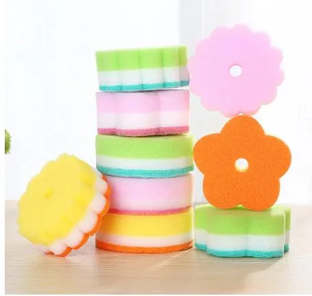 Тем, кто стремится украсить кухню необычными предметами, могут понравиться губки необычной формы. В этот набор входят 5 экземпляров в форме цветка. Кроме более привлекательного внешнего вида, они ничем не отличаются от стандартных белых спонжей. Кухонные губки отлично очищают поверхности на кухне и посуду. Радуют необычные цветы и своим размером. Их диаметр и высота составляют 9 см.