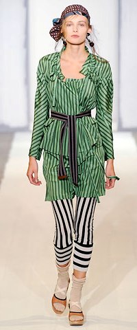 Очень понравилась коллекция сезона весна-лето этой марки. Она как будто создана для женщин, которые одеваются сами для себя, так, как им удобно и комфортно. Головы моделей курашали съехавшие набок косынки, как будто девушки сначала работали в саду, а потом вышли на подиум. Стиль хиппи,