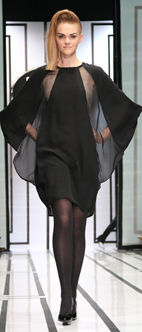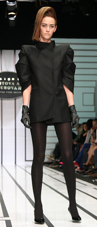 Черное, белое, красное – классические цвета для дизайнерского дуэта Chistova & Endourova не более чем рамки для смелых экспериментов. В своей последней коллекции доминировала модная геометрия, простота цветов в полной мере компенсировалась сложностью кроя, а графичные прически моделей усиливали впечатление от показа.