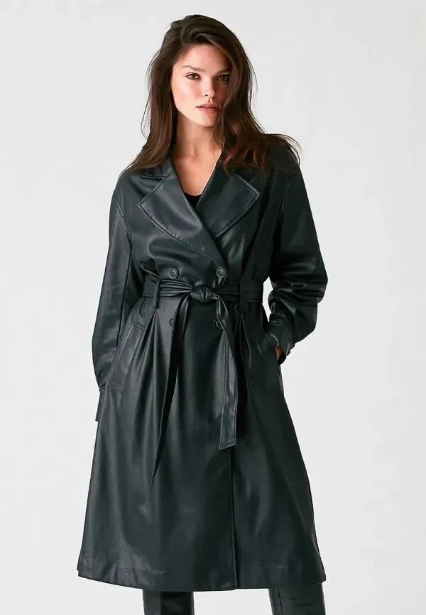Плащ-халат из искусственной кожи — прекрасная альтернатива косухам и бомберам.