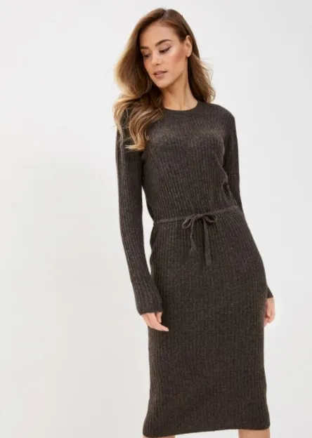 Трикотажные платья в структурный рубчик уже сами по себе выглядят очень стильно и не нуждаются в дополнительных аксессуарах. Но если ты все же хочешь расставить акценты, подбери к нему контрастный кожаный ремень, сумку насыщенного цвета, пару украшений. Облегающие модели длины макси носи с высокими сапогами, поверх надевай пиджак в мужском стиле или длинное пальто расслабленного кроя. Для создания максимально комфортного образа на каждый день сочетай платье с городскими кроссовками и объемным пуховиком.