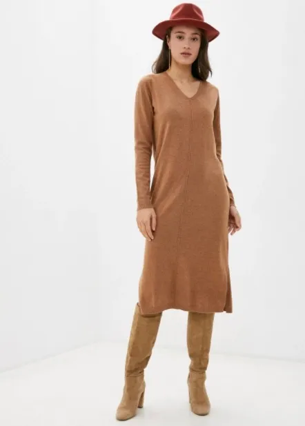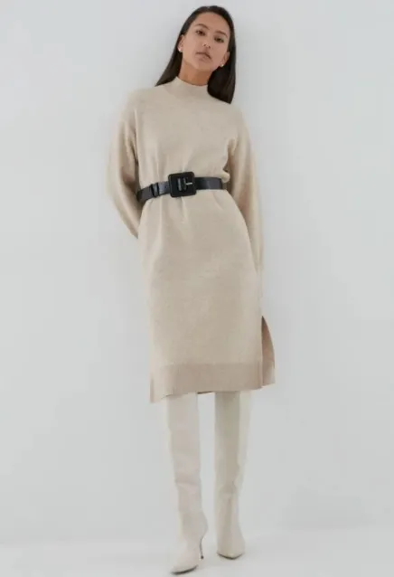 Осенью-2020 актуальны лаконичные трикотажные платья с высоким воротником. Чем проще силуэт и фактура, тем лучше (в сторону коротких платьев-свитеров с крупными «косами» даже смотреть не стоит). Носим их с плотными колготками и кожаными ботфортами. Подчеркнуть фигуру поможет широкий ремень или пояс-корсет.