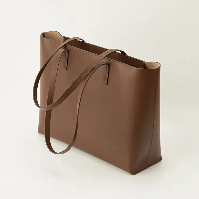 Завершает нашу подборку сумка от российской марки Askent. Гладкий лаконичный шопер коричневого цвета — идеальная база как для офиса, так и для обычной прогулки. Модель закрывается на металлическую молнию, внутри — отделение для 13-дюймового ноутбука и карман на молнии, достаточно большой, чтобы положить туда зарядное устройство. В основное отделение с легкостью поместится 16-дюймовый ноутбук и документы формата А4.