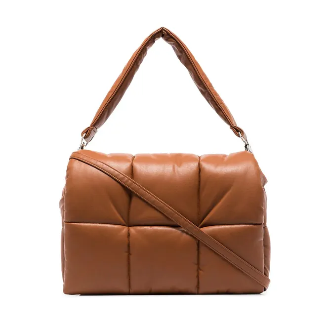 Стеганые сумки по-прежнему в топе, и если ты еще не успела обзавестись модным аксессуаром, самое время это исправить. Модель мягкой формы смотрится в образе уютно и спокойно. Ее удобно носить на плече, в руке или, благодаря длинному ремешку в комплекте, перекинув через плечо. Не менее гармонично такая модель впишется и в более дерзкий образ: она эффектно выглядит на контрасте с кожей или строгим деловым костюмом, а также подружится с одеждой спортивного или романтичного стилей.