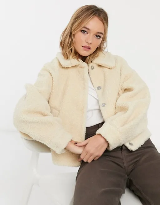 Классическая куртка из искусственного меха согреет тебя в прохладные дни и украсит твой повседневный лук.