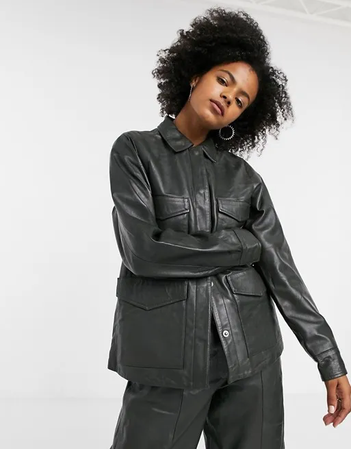 Стильная куртка из натуральной кожи с накладными карманами — идеальная вещь для кожаных монолуков. Не веришь? Проверь сама!