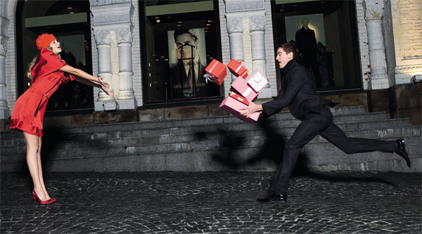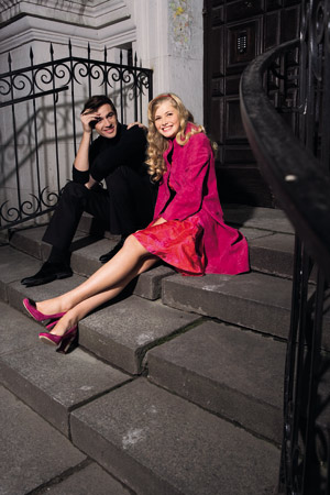 | НА НЕЙ: платье, by Malene Birger; заколка, Kenneth Jay Lane НА НЕМ: костюм, сорочка и галстук, Lanvin | НА НЕЙ: пальто и туфли, Dior by John Galliano; платье, Icon НА НЕМ: водолазка, Yves Saint Laurent; брюки, Prada; туфли, Dolce&Gabbana |