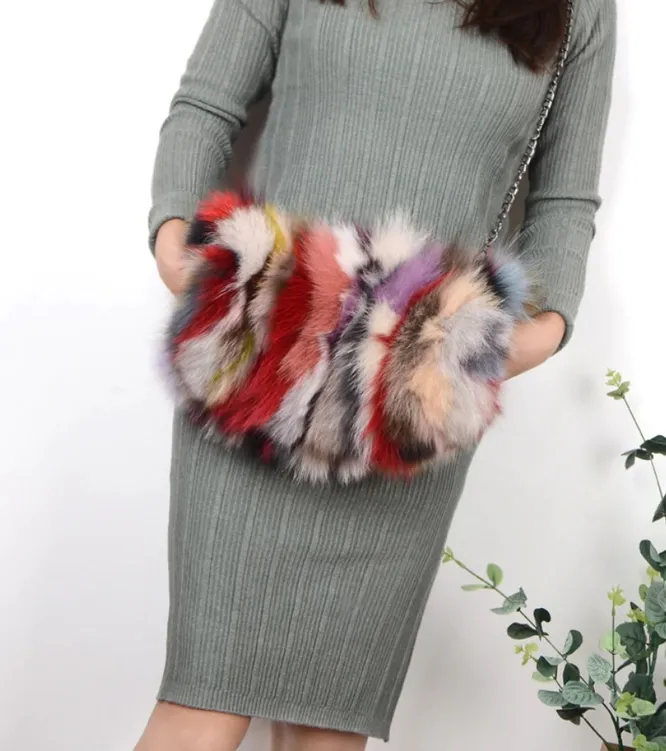 Если тебе нравятся яркие и неординарные аксессуары, обрати внимание на эту пеструю муфту из цветного меха. Ее можно сделать акцентным пятном в минималистичном образе или интегрировать муфту в эффектный лук с цветной шубой или пуховиком в стиле колор-блок или с принтом. Модель имеет молнию и может служить сумкой, поэтому ее можно брать с собой на вечеринку: она идеально дополнит коктейльное платье, смокинг или шелковый комбинезон.