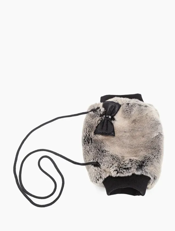 Хочется чего-то интереснее? Тогда обрати внимание на комбинированную модель из натурального меха кролика, украшенную элегантным бантиком. Муфта также имеет шейный шнурок. Ее можно носить спереди или надевать через плечо как сумку, пока не будет потребности согреть руки. Для создания органичного образа носи такую муфту с лаконичной верхней одеждой и минималистичными аксессуарами. Это может быть классическое пальто, кожаная сумка без декора, шапка и шарф с гладкой фактурой.