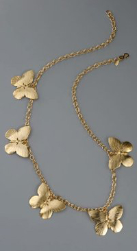Очаровательным дополнением к босоножкам будет ожерелье с вспорхнувшими на него бабочками, символами лета. Их блестящая поверхность будет играть в свете солнечных лучей и окружит тебе ореолом теплой солнечной энергетики.
