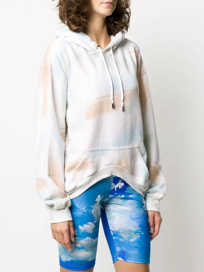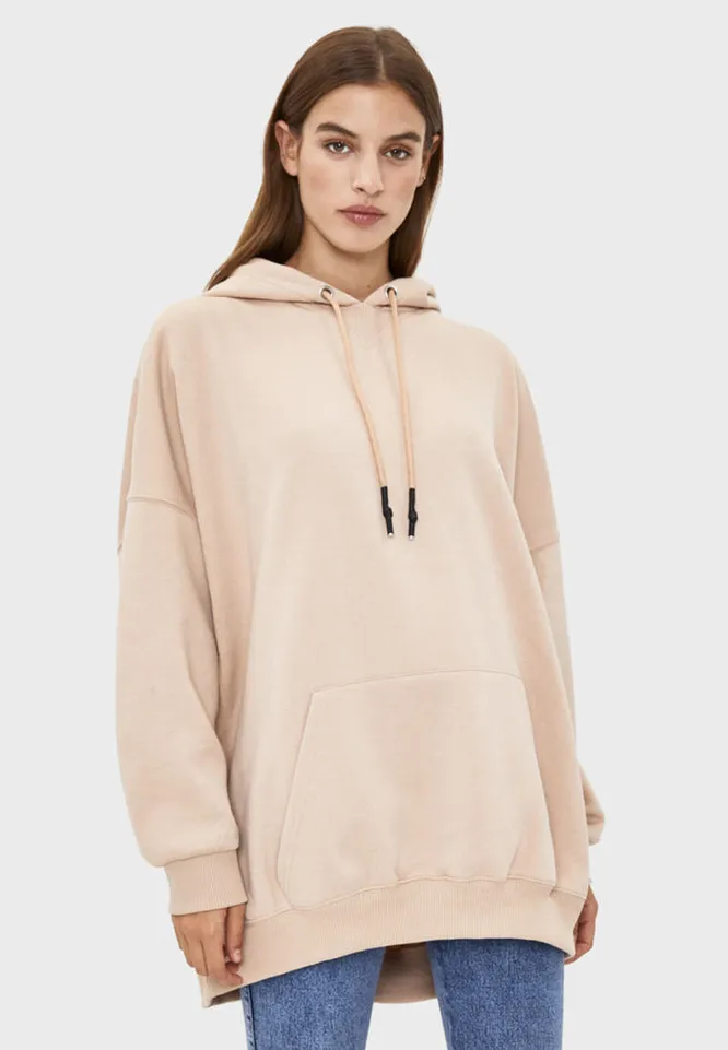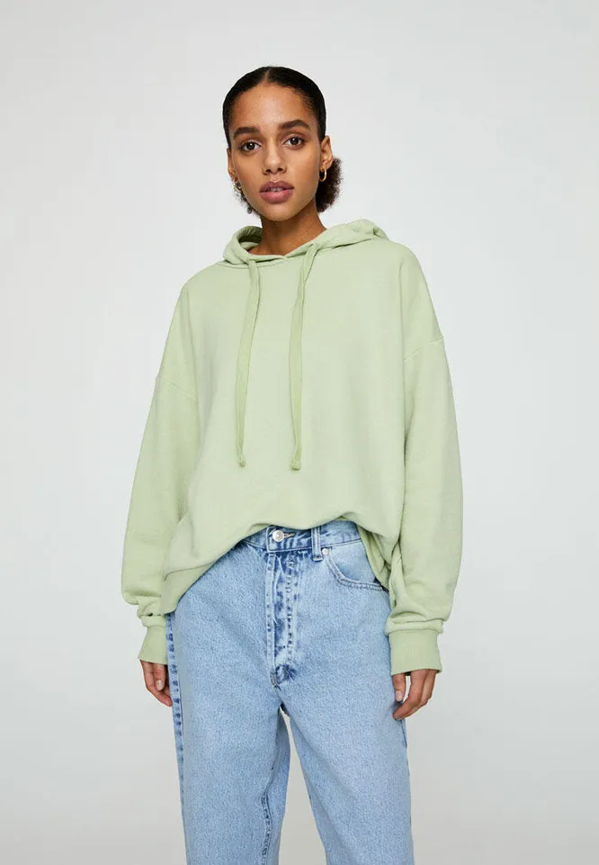 Спортивный стиль на контрасте с нежной пастельной гаммой превращает обычное худи в универсальный