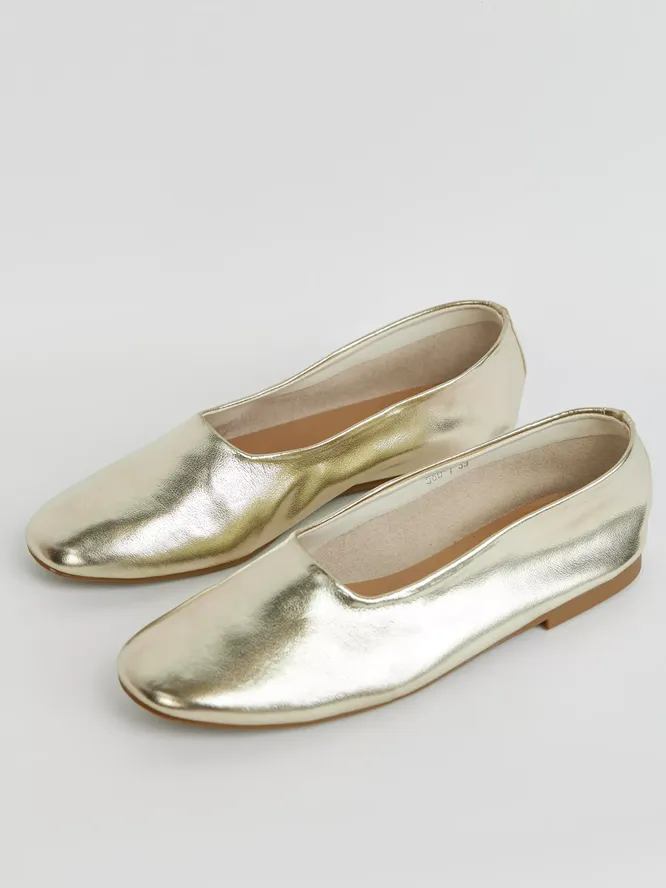 Металлик – отличный выбор, мы всегда советуем делать на него ставку. Золотые, серебряные и платиновые туфли в минималистичном дизайне сами подстроятся под палитру твоего аутфита благодаря своей зеркальной поверхности. Чудо!