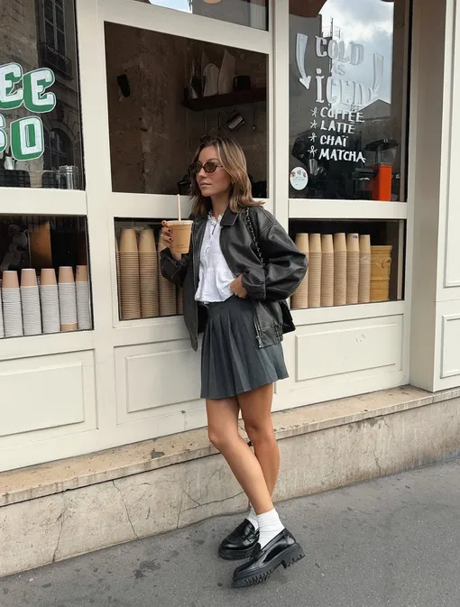 История с лоферами та же, что и с кроссовками: выбирай модель на высокой платформе. А чтобы защитить щиколотки от холодного ветра, обязательно надевай высокие носки. Вот и почти а-ля лондонская фэшэниста собран.