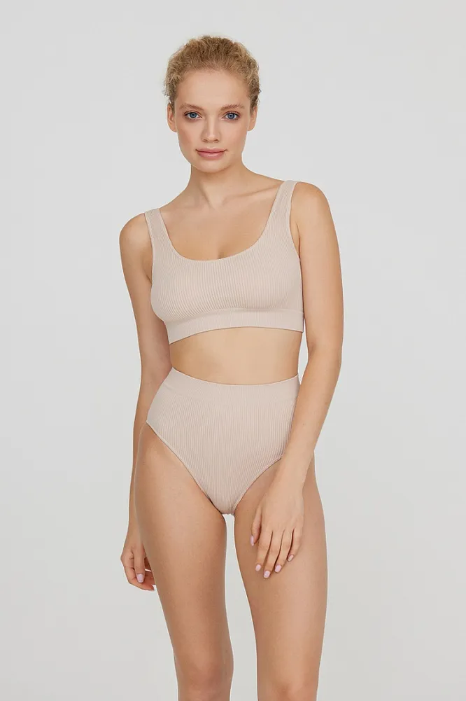 - в идеальной ситуации ищем бесшовное белье бежевой палитры. Оттенок должен быть максимально приближен к цвету твоей кожи, чтобы мы получили эффект невидимости. Отсутствие швов гарантирует, что никакой лишний рельеф не испортит твой образ;