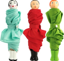 завернутые в разноцветные дождевики и обутые в резиновые сапоги (так выглядят их ручки). Персонажи-зонты в этой коллекции забавнейшие – есть Кармен, невеста, небритый моряк и даже золотой Будда. |