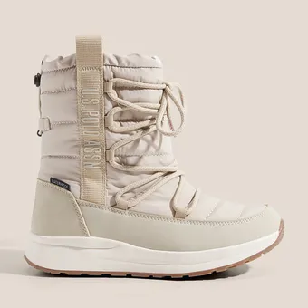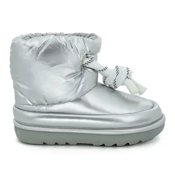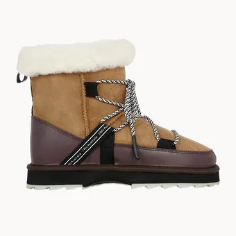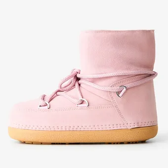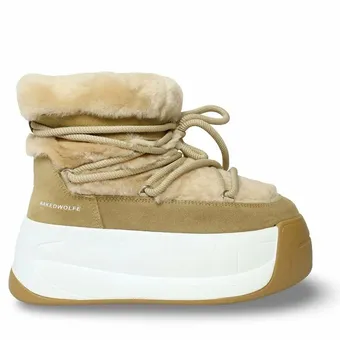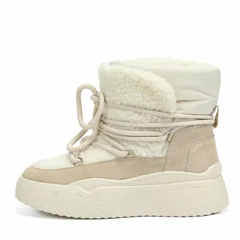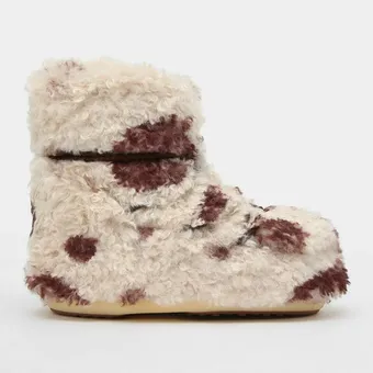 Самые классические варианты – светлые модели с меховыми вставками и шнуровкой, выполненные из замши. Выглядят они, надо сказать, отлично. Только не забудь обработать такие мунбуты водоотталкивающим средством!