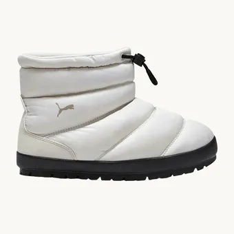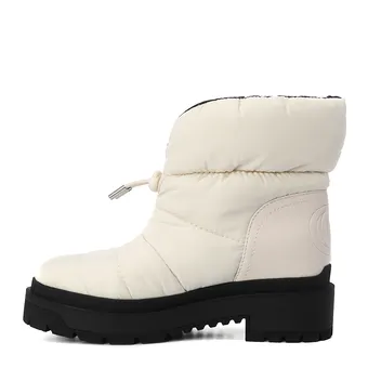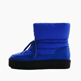 Мегатренд именно сегодня – пушистые мунбуты. Эффектно, спору нет, но не совсем практично (если погуляешь по мокрому снегу, обувь потом придется приводить в порядок). А вот стеганые дутики проблем вообще не доставят. Уж на кого, а на них можно положиться!