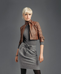 Вместо открытого топа – тонкая обтягивающая водолазка, а сверху – все тот же укороченный жакет.