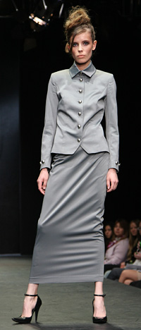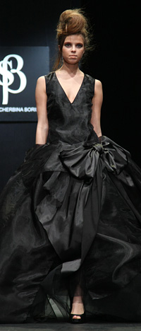 Офисный стиль днем, платье — вечером...Какая она современная леди? На этот вопрос ответил показ Shcherbina. Объемные юбки, ассиметричные платья, границы между вечерней модой и офисным стилем стерты. Длинные узкие юбки и пиджаки, темные тона, платья песочного цвета и, конечно, черно-белая обувь. Вечерняя мода была представлена коллекцией платьев из органзы.