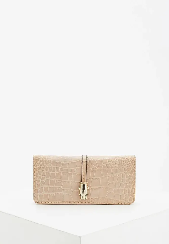 Кошелек выполнен из натуральной кожи с модным в этом году эффектом под крокодила. Сдержанный оттенок материала прекрасно подойдет для сильной и уверенной бизнес-леди.