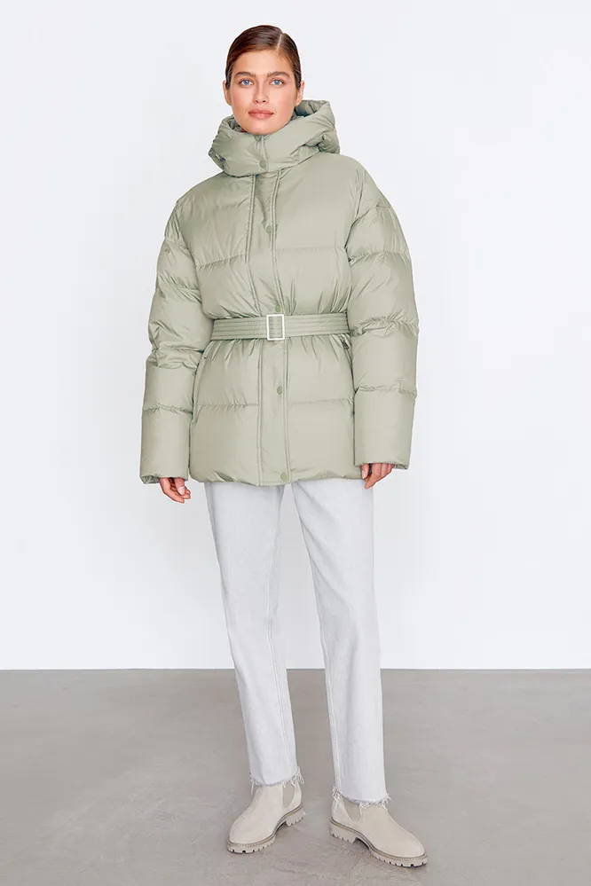 Если ты не любишь массивную верхнюю одежду, отличным вариантом станет пуховик с поясом. Аккуратный ремешок в тон куртки поможет обуздать объем и придать силуэту форму. Главное, сильно не затягивай пояс — иначе пуховик будет смотреться тесно.