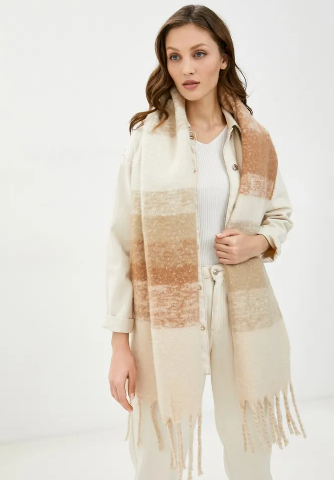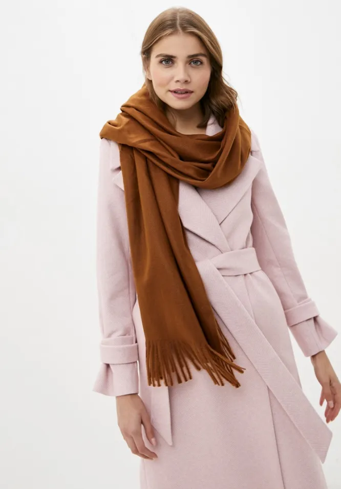 Базовые однотонные шарфы не подчиняются временным модным трендам и всегда актуальны. Единственная сложность – выбрать идеальный цвет. Беспроигрышный вариант – базовый оттенок (бежевый, кэмел, коричневый, черный, серый). Такой шарф органично смотрится и с классическим пальто, и в сочетании с принтованной курткой. Если ты все же остановилась на шарфе яркого цвета (фуксии, к примеру), то выбирай дорогие модели из натуральных материалов (яркий цвет на синтетических тканях зачастую смотрится дешево).