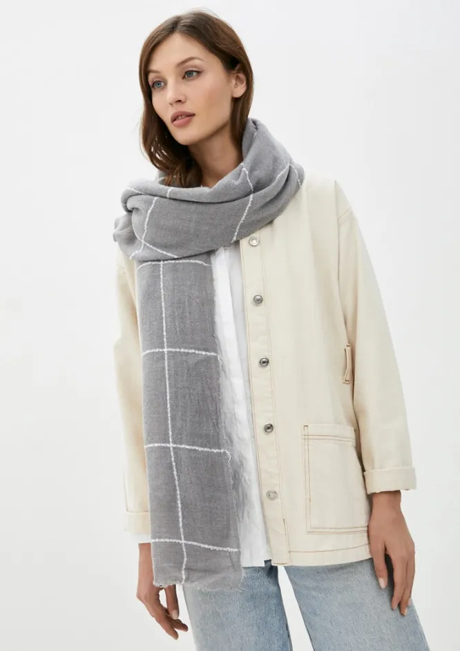 Клетчатый шарф – еще один универсальный вариант теплого аксессуара на осень и зиму. К классическому пальто больше подойдет модель в мадрасскую клетку, гленчек или windowpane («оконная рама»). С ультрамодным пуховиком носи шарф в консервативную клетку аргайл, а если хочется добавить повседневным образам немного гранжа, выбирай модели в красно-черную шотландку или зелено-черную – блэк уотч.