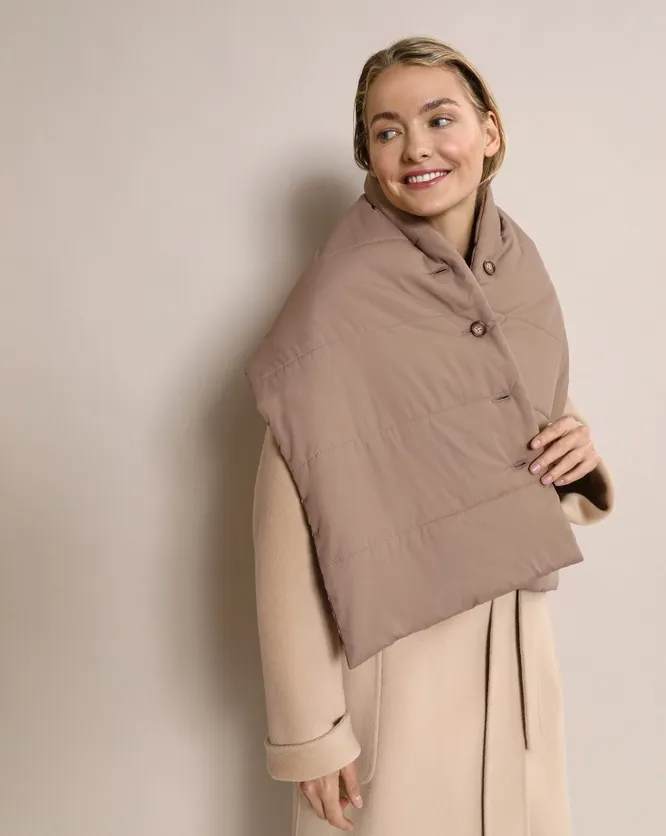 Необычной альтернативой трикотажному шарфу станет стеганый, похожий воротник от пуховика. С таким аксессуаром не страшны сильные морозы и пронизывающий ветер. Звезды стристайла смело носят дутые стеганые шарфы не только с куртками, но и с лаконичными пальто и тренчами. Если подобрать аксессуар в тон верхней одежде, то получишь контрастный и одновременно органичный образ.