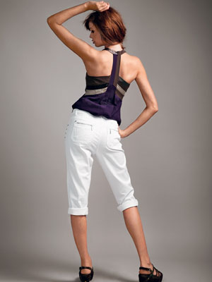 Открытые плечи + Белые брюки Топ, Karen Millen; джинсы, Luisa Cerano; сандалии, Cesare Paciotti; бюстгальтер, Triumph; стринги, Milavitsa | Американская пройма Платье, Jasmine Di Milo; туфли, Corso Como; бюстгальтер, Triumph |