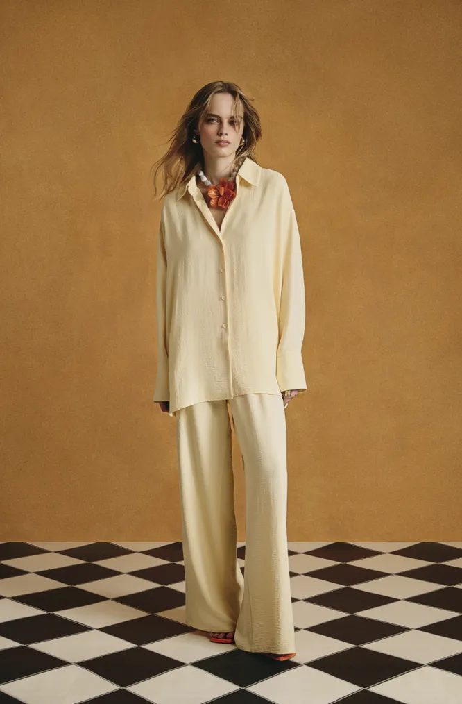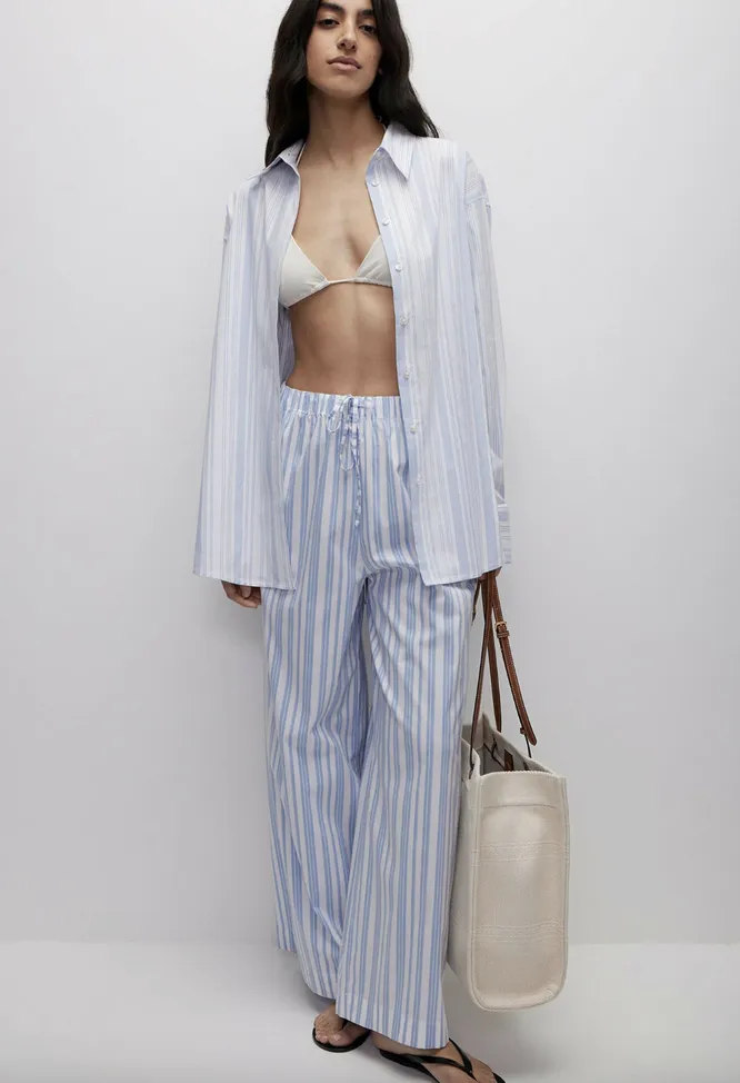 Приглядись к подиумам! Дизайнеры все чаще стали заигрывать с пижамной темой, и эти образы «простенькими» и «домашними» не назовешь. Ключевые элементы вроде полоски, пастельной палитры, рюш или горошка делает свой дело, визуально расслабляя композицию, а строгие линии (брюки палаццо, рубашки с воротниками, накинутый поверх жакет, босоножки или лоферы) облагораживают аутфит, уводят подальше от границы с несобранностью.