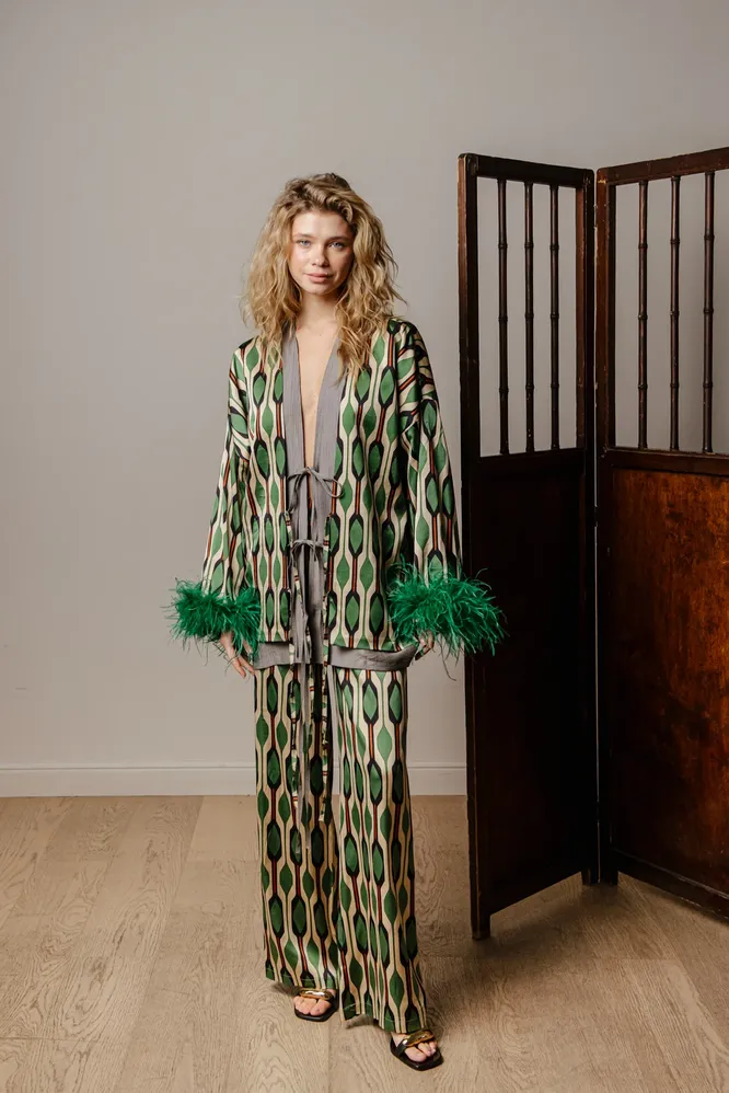 И отдельная наша любовь – пижамные костюмы в восточном стиле. Этнические принты и перья просто созданы друг для друга, грех не носить их вместе! Отдельный плюс – со стайлингом в таком случае можно особенно не грузиться. Костюмы с активным принтом и насыщенной палитрой сами по себе цельная картинка, ее достаточно «обрамить» базовыми кожаными сандалиями и тоутом из канвы. Или плетеной сумкой. Рассказываем – и сами хотим всю эту прелесть примерить! Что мы, собственно, в ближайшее время и сделаем:)