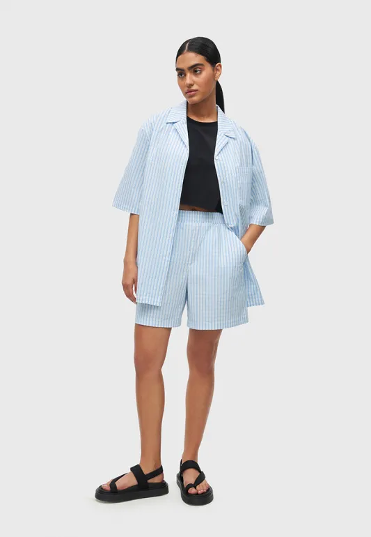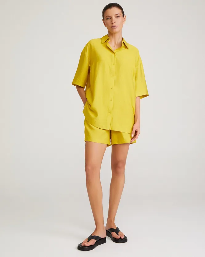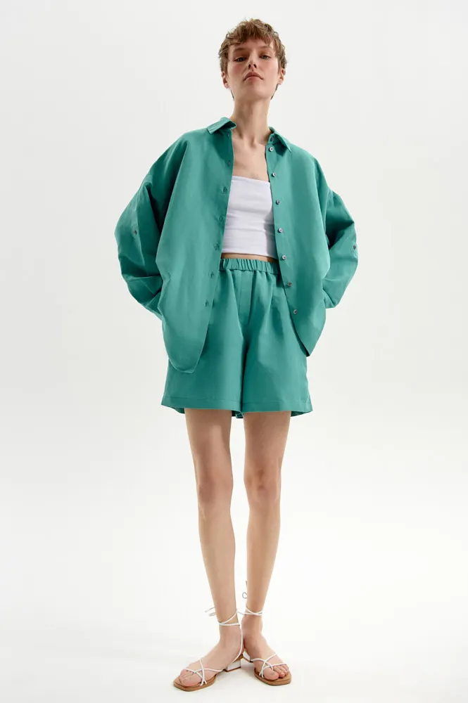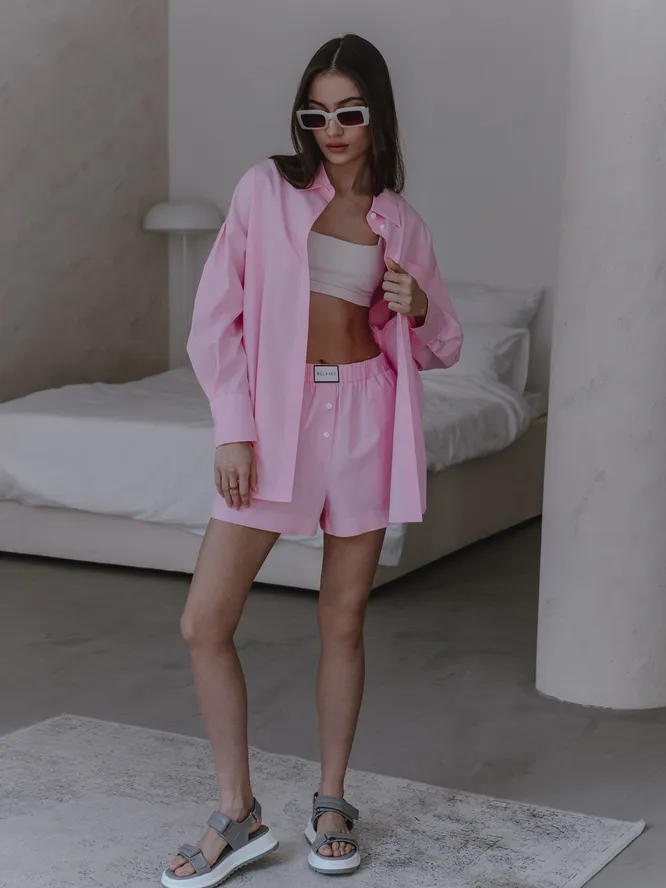 Кстати, присмотри еще и комплект с шортами: в середине лета жара, как обычно, будет невыносимой, и укороченная версия пижамы очень выручит. А еще это незаменимый наряд для пляжного отпуска — так первым делом сложи в чемодан парные рубашку и шорты!