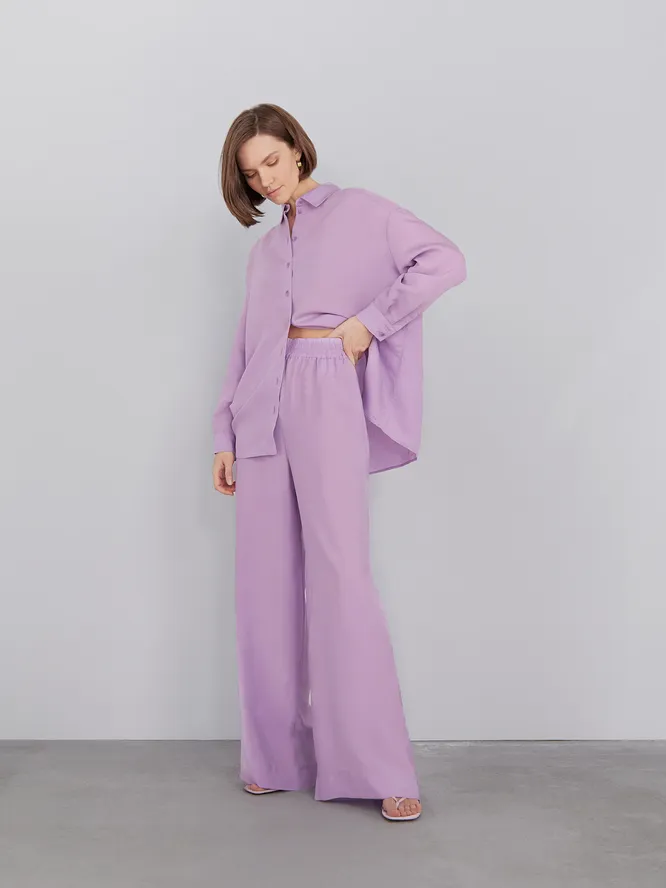 Сейчас фэшэниста сфокусированы на нескольких их вариациях, которые мы и наблюдаем на стритстайлах по всему миру. В фаворитах числятся комплекты, полностью имитирующие пижаму (обычно из мнущихся натуральных материалов в полоску), модели из атласа, шелка и вискозы. Отдельным пунктом идут костюмы из фактурных тканей — например, жатых.