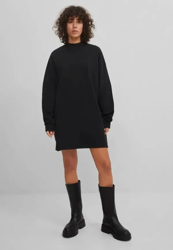 Удобное платье свободного кроя, в котором ты будешь чувствовать себя комфортно на работе, на вечеринке или просто на встрече с подругами. Оверсайз-силуэты — твоя любовь? Тогда не раздумывай и покупай черное платье-свитшот для своей капсулы.