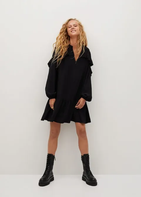 В кэжуал-аутфитах удобные черные платья можно комбинировать с объемным джемпером с высоким воротником и парой грубых ботинок. На свидание надень короткое черное платье с ботильонами на шнуровке или с мюли, а шею укрась аккуратной многослойной цепочкой.