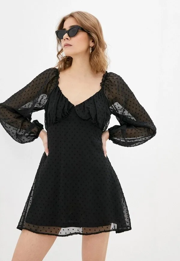 Ищешь сексуальное, но при этом ненавязчивое платье? Обрати внимание на модель со спущенными пышными рукавами. Чтобы создать чувственный образ, комбинируй вещь со светлой обувью и несложными украшениями.