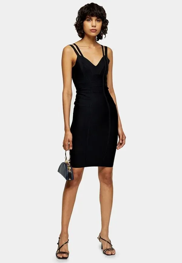 Короткое коктейльное платье с двойными бретелями и открытой спиной поможет тебе выделиться на вечеринке без особых усилий. Дополни наряд правильными аксессуарами — аккуратной сумочкой на цепочке и босоножками с квадратным носком.