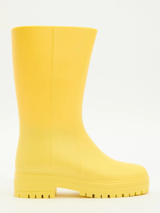 Что касается высоты сапог – тут тоже есть нюанс. Сейчас популярнее всего модели до середины икры или чуть выше. Мегатренд – высокие резиновые сапоги, доходящие аж до бедра. Они, конечно, эффектные, но в городе такие вряд получится выгуливать на повседневной основе. Так что сконцентриуемся на трендовых сапогах средней высоты и резиновых полусапогах – очень уж удобные.