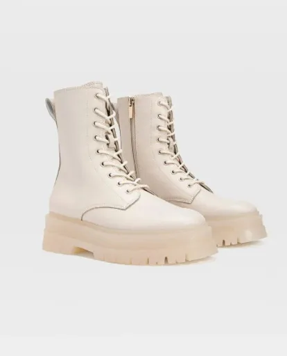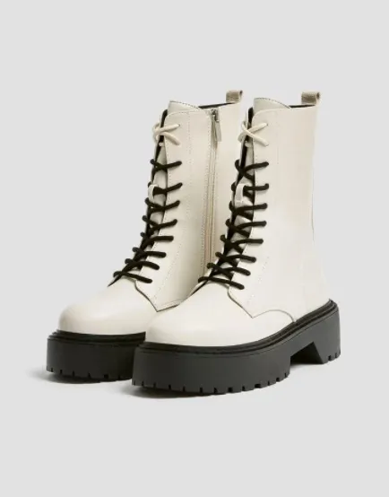 Еще одна модель ботинок на шнуровке, которая стала хитом стритстайла, – белые. Они смотрятся не так грубо и громоздко, как черные, и сохраняют при этом свою гранжевость. Каждый день носи их с платьями миди в цветочек, светлыми джинсами и объемными свитерами, кожаными мини-юбками и женственными блузами. В контексте делового стиля белые ботинки органично впишутся в лук с однотонным строгим костюмом-двойкой, а также хорошо дополнят комплект с широкими шерстяными брюками и водолазкой.