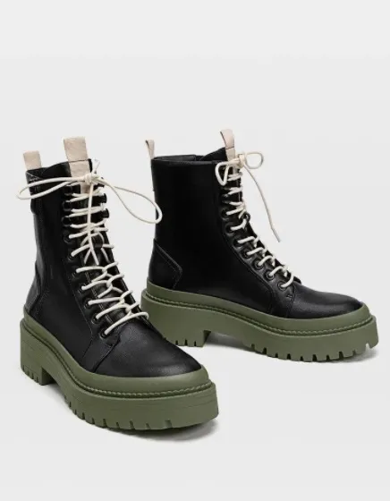Классика жанра – черные ботинки на шнуровке и тракторной подошве. Идеально подойдут тем, кто предпочитает дерзкий стиль или любит смешивать разные фактуры и создавать контрастные образы. Ультрамодное сочетание осени-2020 – ботинки + кожаные брюки с защипами или джинсы mom’s. Для создания выразительного силуэта в качестве верха выбирай рубашку с рукавами-буфами или блузу с объемными рюшами и воланами. Если хочешь что-то более простое и расслабленное – отлично подойдут водолазка и пиджак мужского кроя. Черные ботинки также гармонично дополнят вечерние наряды с лоснящимися комбинациями и женственными коктейльными платьями.