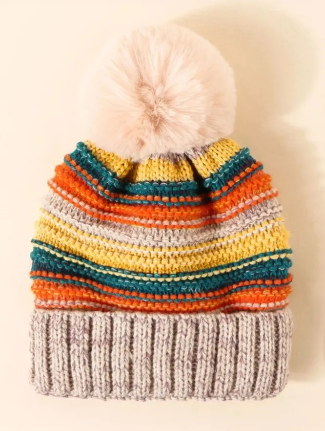Пестрая разноцветная шапка добавит ярких красок, которых зачастую очень не хватает нашим «серым» зимним образам. Носить ее лучше с однотонной верхней одеждой и дополнять минималистичными аксессуарами, чтобы ансамбль выглядел гармонично.