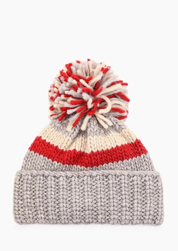 Если ты предпочитаешь спортивный или уличный стиль, то тебе подойдет шапка с помпоном в серо-красную полоску. Лучшим дополнением к ней станет узкий короткий шарф и базовые вязаные или дутые перчатки. Шапка станет отличным дополнением к горнолыжным костюмам, дутым курткам и пуховикам, а также к меховым пальто расслабленного кроя.
