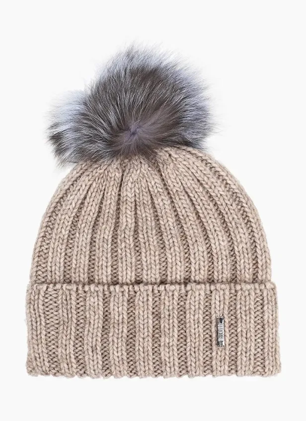 Женская шапка с помпоном из натурального меха в нейтральном бежевом цвете – базовый зимний головной убор, который подойдет практически под любую верхнюю одежду. Ее можно носить с классическим пальто и кашемировым палантином, если ты поклонница строгих, деловых образов. Или сочетать с дутым пуховиком, зимними кроссовками и вязаным шарфом в спортивном стиле – получится комфортный повседневный лук. В сочетании с комбинированной дубленкой шапка создаст стильный фактурный аутфит.