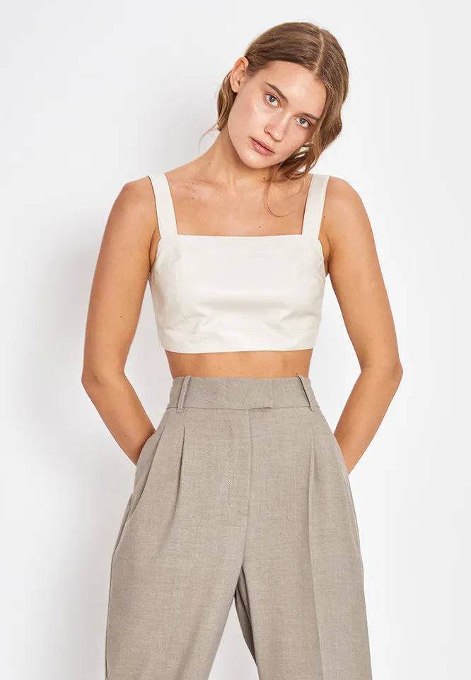 4. Укороченный топ и брюки/джинсы с высокой талией — идеальный тандем.