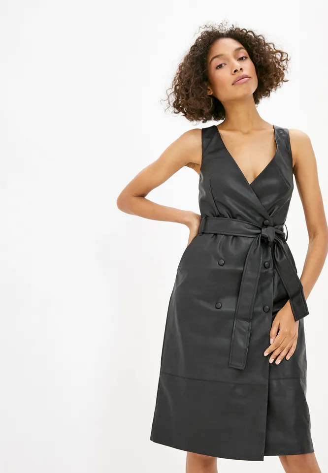 Надень черное кожаное платье на новогодний корпоратив, если весь год боялась примерить трендовую вещь. Комбинируй изделие из кожи с массивными серьгами и аккуратными открытыми босоножками.