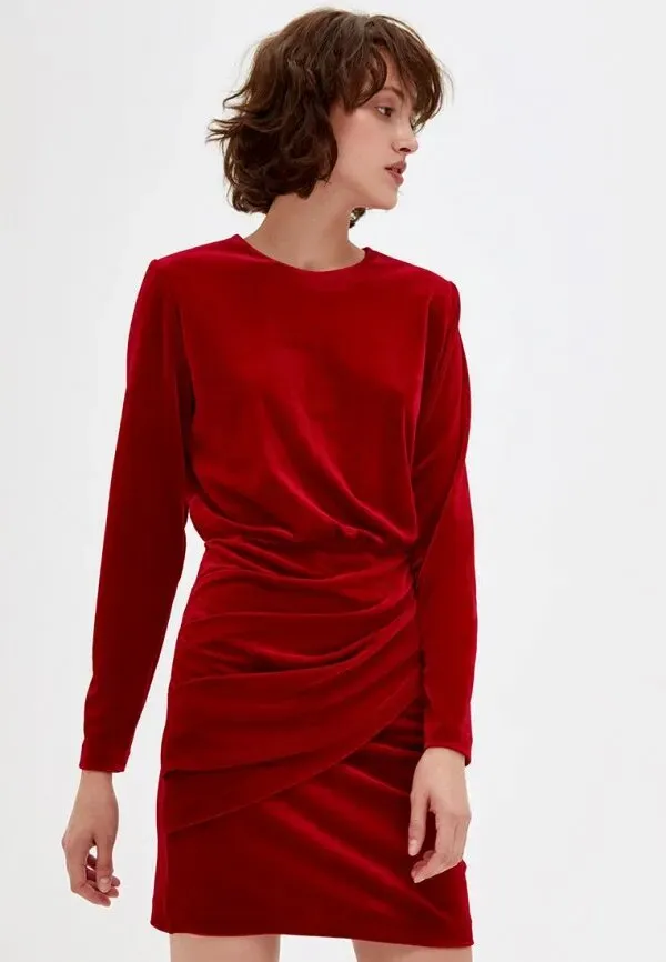 Ищешь классическое платье на корпоратив? Делай ставку на элегантный вариант из мягкого бархата. Облегающий силуэт, глубокое декольте и мини-длина — новогоднее платье просто создано для роковых женщин.