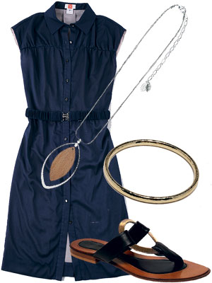 Поло, Fornarina; шорты, Alexander McQueen; браслет, Lady Collection; босоножки, Vicini Tapeet | Сарафан, Topshop; майка, JLo; браслет, Accessorize; туфли, Coccinelle |